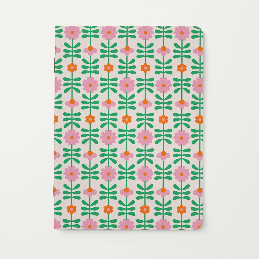 Our colorful retro floral notebooks were made for your doodles, daydreams and everything in between. Compact and lightweight so you can always have on hand when inspiration or to-dos strike. Features a textured cover with soft rounded corners and a cute nameplate on the inside cover. The smooth bright white ruled pages inside are perfect for penning the next Great American Novel, curating your grocery list, junk journaling, note-taking, thumbnail sketches, deep thoughts, medium thoughts, and so on and so forth. Oh and one more thing, a unique characteristic of our notebooks is that the first page is not precious! We encourage you to just dive right in and break it in :)