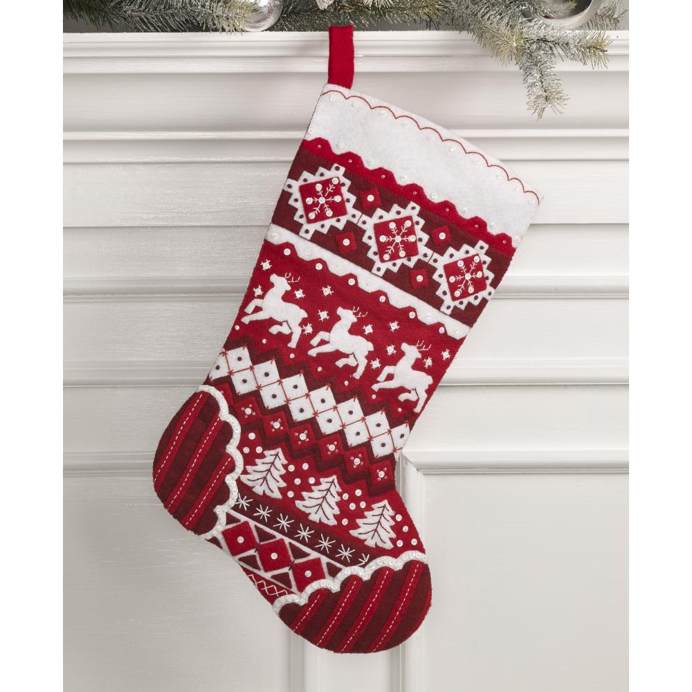 Stitch a classic sweater design for your stocking this year! Includes stamped felts, cotton floss, color separated sequins and beads, two needles and instructions.