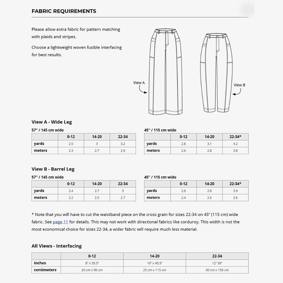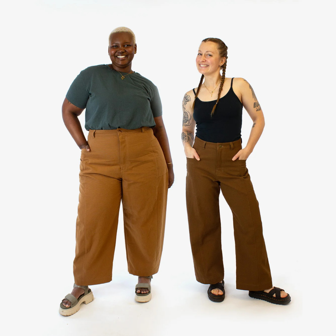 Face your fear of zipper and learn to construct a zipper fly! The Falconer pant also feature belt loops and side panels with set-in pockets. Choose either a wide leg, or a cropped barrel leg. You will love the effortlessly cool fit and design details of the Falconer Pants!