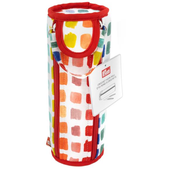 Store knitting needles and crochet hooks up to 10 inches long! This fun round pouch is the perfect size for storing crochet hooks and accessories. Opens easily with a single pull on double zippers. Side opening makes it simple to see and access what's inside. Hook and loop tape keeps flap in place while opening and closing roll.